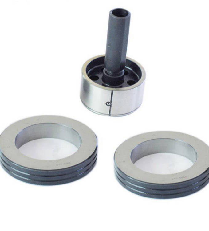 測量頭的標準件是上、下限校對規(環規)各個,用來校正量儀的倍率。測量時,將測量頭插入被測孔內,量儀指示的數值為被測孔內徑的誤差直。如果將測量頭沿被測孔作軸向移動,量儀指示